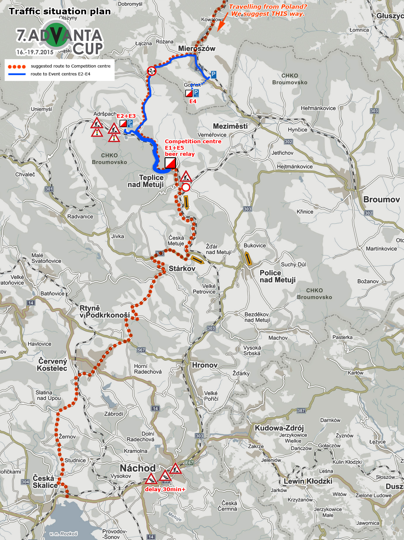 Jinak pro zvědavé tu mám několik plánků (viz menu vlevo). Pokud už plánujete dopravu, doporučuju vyhnout se Náchodu, protože 1) je rozkopaný a zdržení je veliké a 2) V Teplicích je taky rozkopaná cesta a objížďka vede přes Českou Metuji. Tady je doporučená cesta pro příjezd od Hradce.